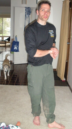 These ruminations make it seem like I was just enjoying myself. No sirree. At about eight hours in, I felt I got my fourteenth wind when another swamp sucked it straight out of me. A small navigation error had me miss another CP, but again I felt it was fine to forge ahead. It was becoming a matter of making it within the cutoff. At another CP, which should have been easy (“edge of a sidehill near Mud Like,” the clue said), I and two other teams spent at least ten minutes looking for it. Then one of the race directors showed because they had been told it was probably stolen. Indeed they ended up thinking it was, and we got a ten-minute credit for it. Once again, I forged ahead, now again being able to run on a pretty decent trail. I overshot the next CP, but concerned for time, decided to skip it. I had three more to get and then two miles of running on the roads to make it within the cutoff, which was now forty minutes away. I got the last three pretty successfully — meaning I didn’t have to look for them for long — and then started hauling ass. “Hauling ass” at nine hours and forty minutes into an endurance event, when the temps are 75F and you’re carrying a backpack, a large map case, compass (two compasses, in fact), knife, long pants, etc., isn’t much, but I told myself anyone can run two miles in twenty minutes. That might be right, but I really didn’t feel like running anymore. Still, I knew I’d be really bummed if I missed the cutoff, so I ran. (I thought of Emil Zatopek in the 1952 Olympic 10K: “There is the gold medal, the silver medal, the bronze medal. And for me, what? A potato? What must I do? I must run. Argh!”) So I ran, argh, and made it to the finish at 9:57 by my watch.