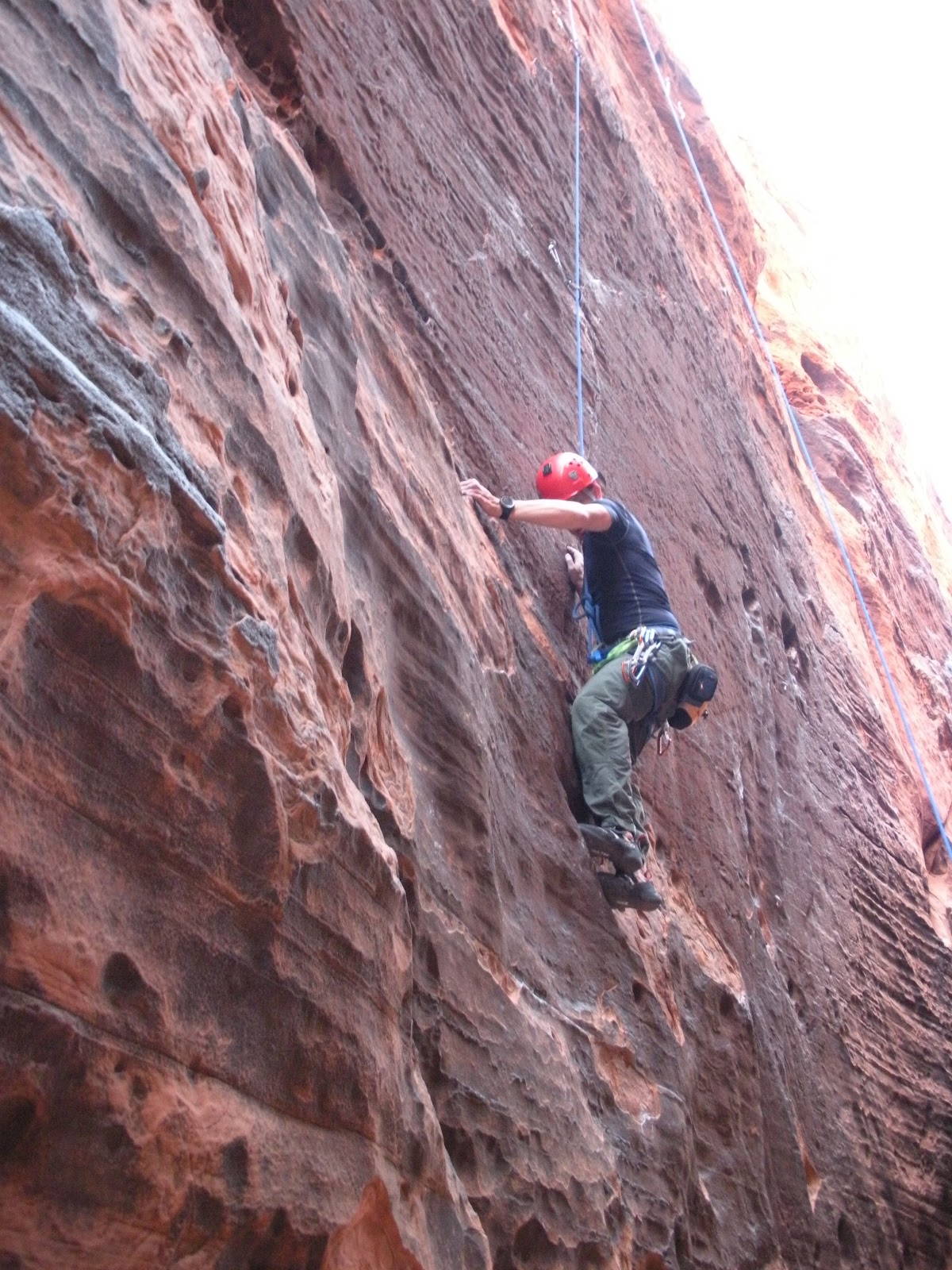 I went to Vegas with my friend Jay, who had been to Red Rock a couple of times. He was a perfect partner: much better than me, but patient, encouraging, and helpful. He always climbed first, which made things easier for me in a bunch of technical ways, and I also got to get his “beta,” that is, prior info on tricky moves.