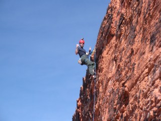 Anyway, I really was there to climb. Red Rock Canyon is a fabulous outdoor area for hikers, bikers, and rock climbers. Especially during the winter months, when Nevada is moderate and much of the rest of the climbing country unavailable, it’s close to perfection: amazing, I mean, amazing natural beauty, almost certainly good weather, and more than a thousand different climbing routes. As they used to say back in the day, OMfG!